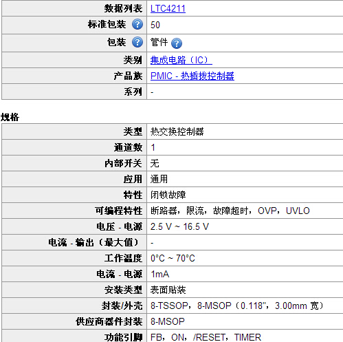 LTC?4211是一個熱插拔TM控制器,其允許電路板安 全地插入并從現場除去背板。一個內部高壓側開關 驅動器控制一個外部N溝道MOSFET的電源電壓門范圍 從2.5V至16.5V 。該LTC4211提供軟開始,并且在啟 動周期浪涌電流限制其中有一個可編程的持續時間。