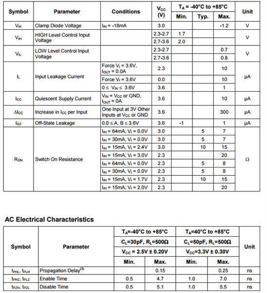 | 低導(dǎo)通電阻的開關(guān)允許inputsto被連接到輸出沒有添加propagationdelay或產(chǎn)生額外的地面反射噪聲 |
