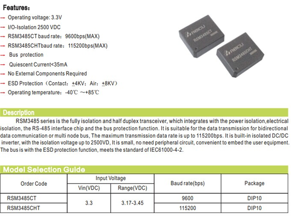 供應 隔離485收發器 隔離模塊 RSM3485CT RSM3485CHT 全新原裝