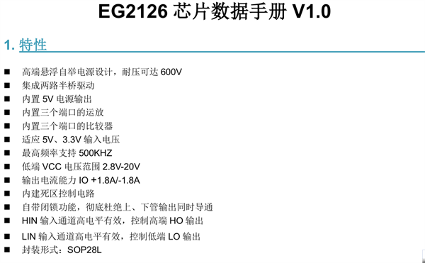 EG2126大驅動芯片 耐壓可達到600V IGBT管柵極驅動專用芯片